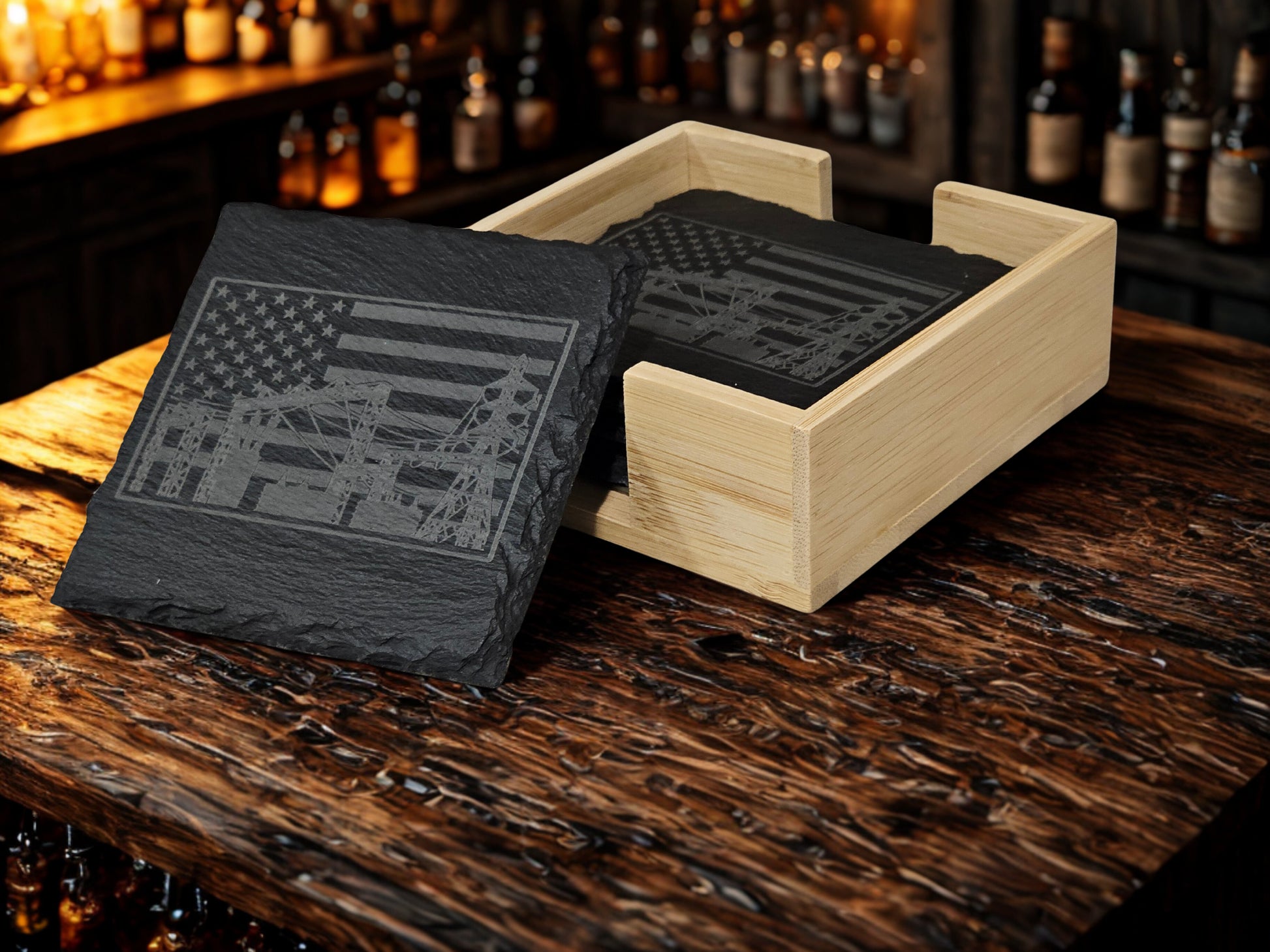 Substation Electrician Gift Engraved Slate Coaster Set with Wood Holder